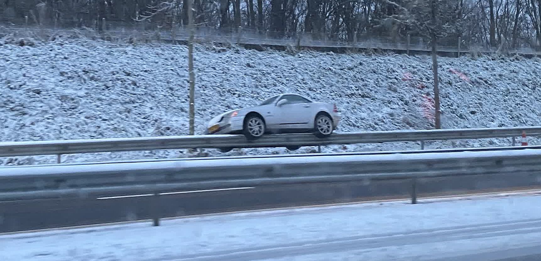 Op de oostelijke ringweg is dinsdagochtend een auto op de vangrail terechtgekomen.