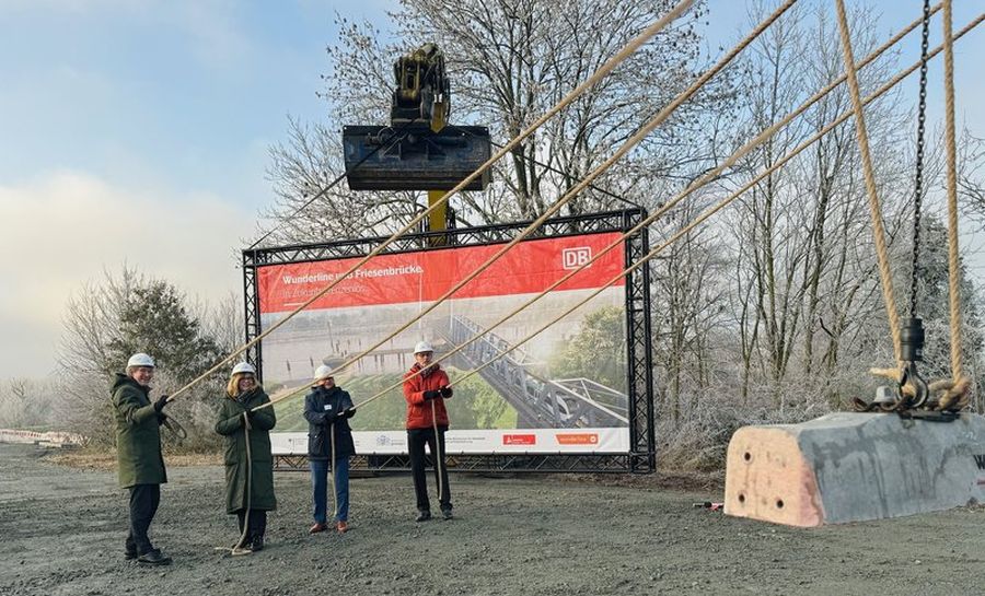 Aan de oostelijke oever van de in aanbouw zijnde nieuwe Friesenbrücke bij Weener werd vrijdagmiddag het officiële startsein gegeven voor het moderniseren en uitbreiden van de Wunderline, de treinverbinding tussen Groningen en Bremen.