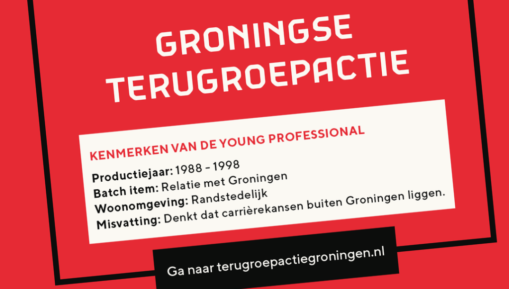 De ’terugroepactie’ richt zich op ‘young professionals’ die tussen 1988 en 1998 zijn geboren en eerder in de regio Groningen hebben gewoond, gewerkt of gestudeerd. De gemeente zoekt met name naar ‘professionals’ met affiniteit voor energie, gezondheid en digitalisering.