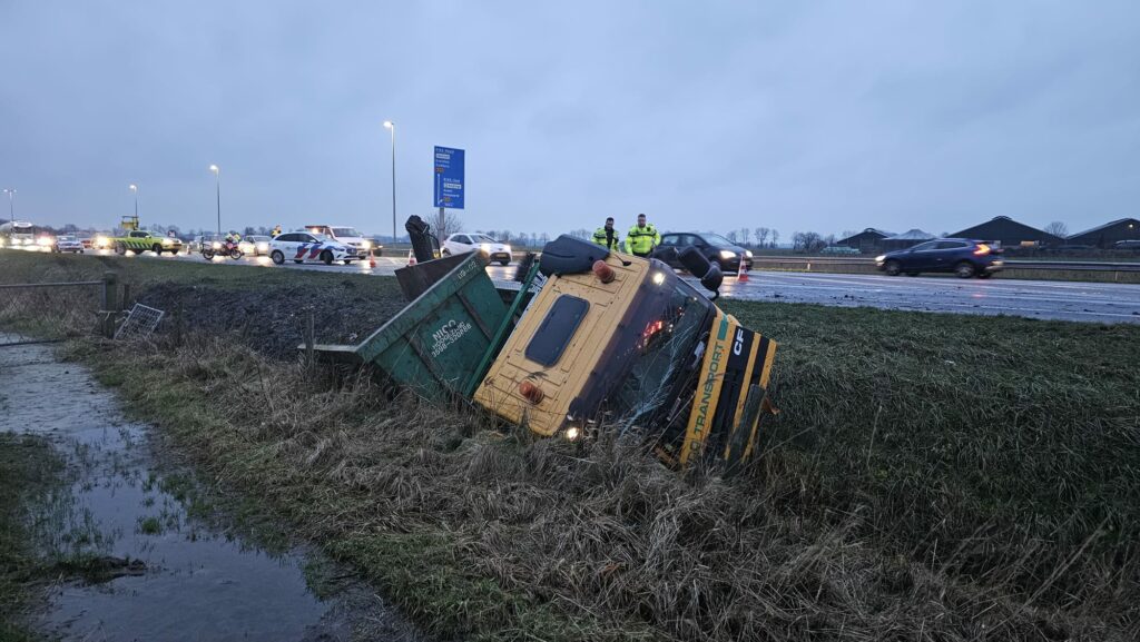Het ongeluk gebeurde op de rijbaan in noordelijke richting tussen knooppunt Boterdiep en Noordwolde. De politie en een ambulance waren snel ter plaatse. De bestuurder van de vrachtwagen werd nagekeken door ambulancepersoneel.