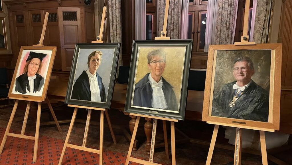 Vier hoogleraren werden geportretteerd vanwege hun bijzondere verdiensten. Nobelprijswinnaar Ben Feringa, antropoloog Marjo Buitelaar, godsdienstpsycholoog Hetty Zock en de in 2021 overleden genetisch epidemioloog Marike Boezen komen in schilderijvorm te hangen in de Senaatskamer van de universiteit.