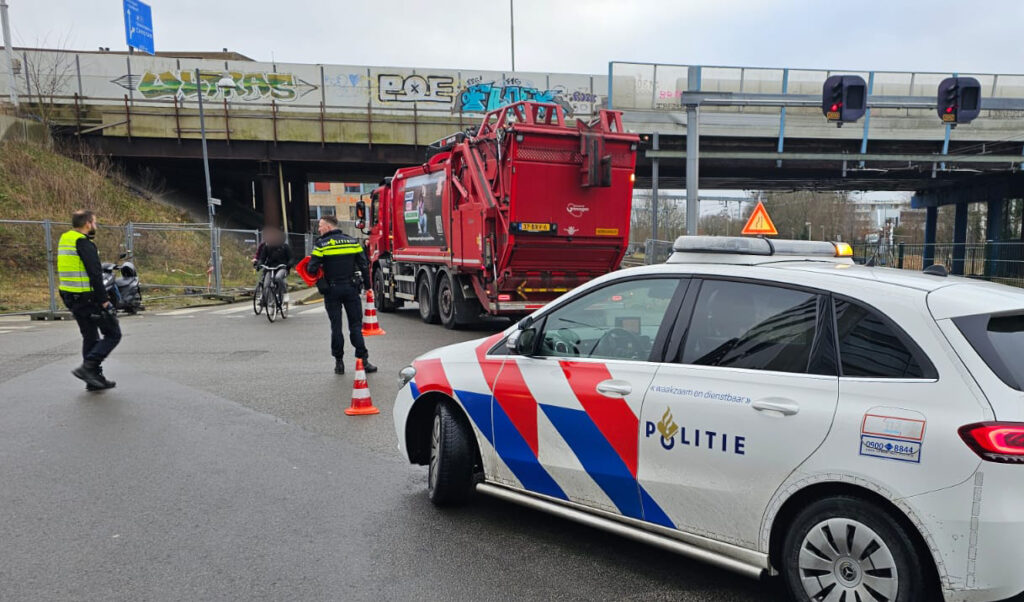 Een vrachtwagen van de gemeente sloot de weg deels af om een veilige situatie te creëren. Het ongeluk veroorzaakte dan ook veel drukte op het kruispunt.