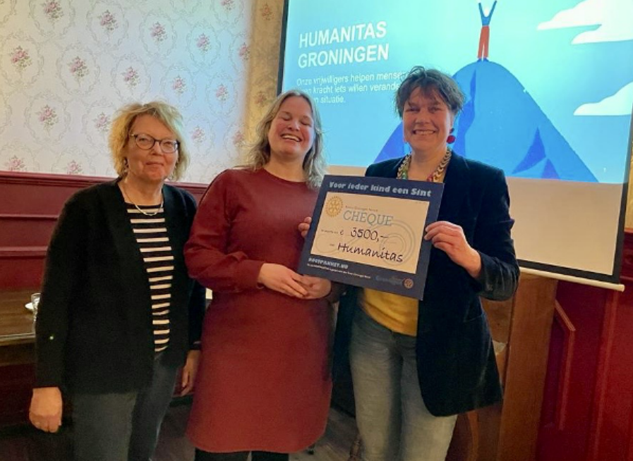 Humanitas heeft dit weekend een geldbedrag van 3.500 euro gekregen van Rotary Groningen-Noord. Met het geld kunnen activiteiten voor kinderen georganiseerd worden uit gezinnen die zich dergelijke ervaringen niet kunnen veroorloven.