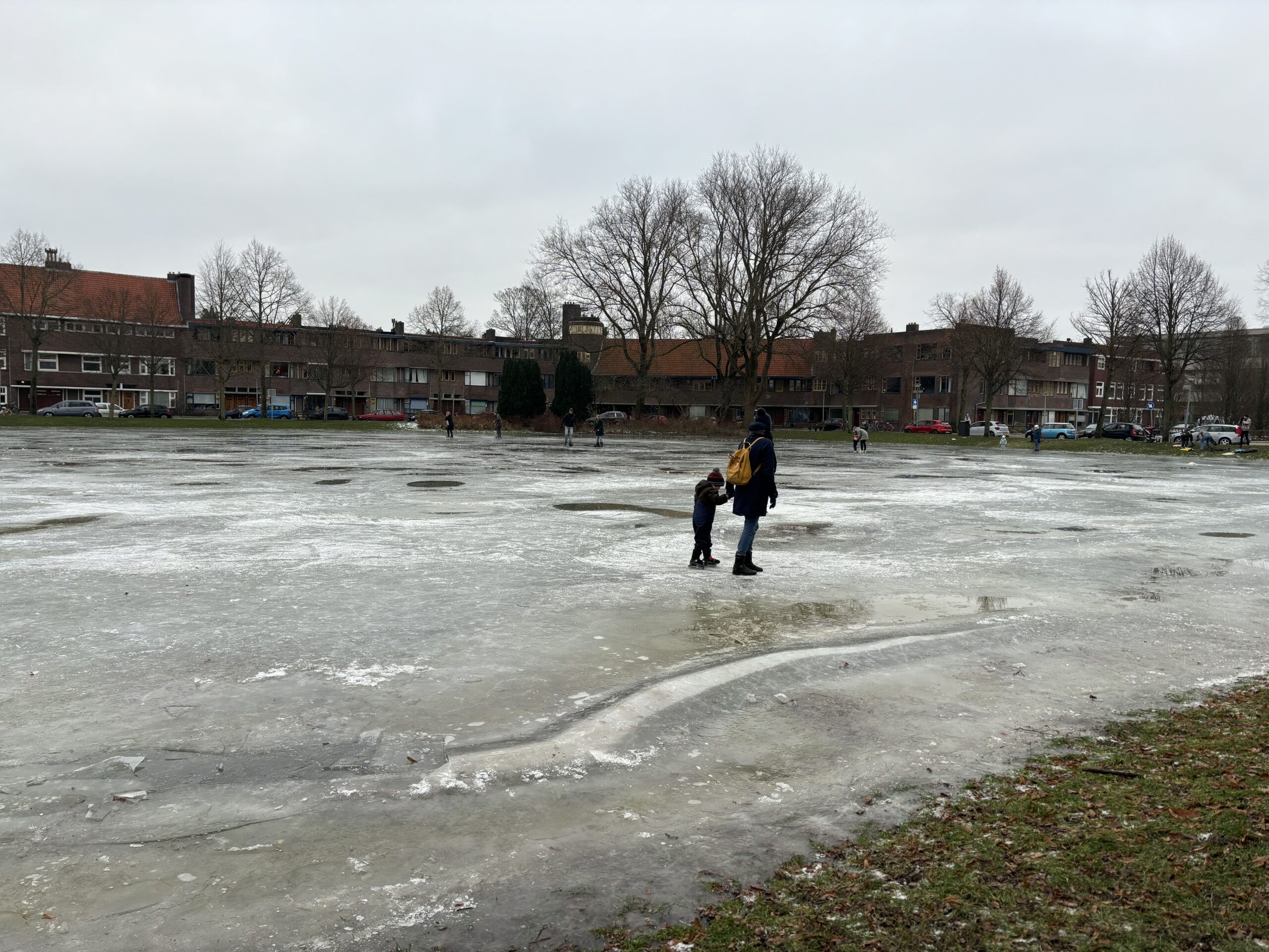 Ondanks dat er veel mensen op het ijs stonden, keken er ook enkele mensen toe. ‘Mijn schaatsen liggen niet in Groningen. Ik vind het wel heel leuk om te schaatsen, dus ik vind dit wel jammer’, vertelt Sara teleurgesteld.
