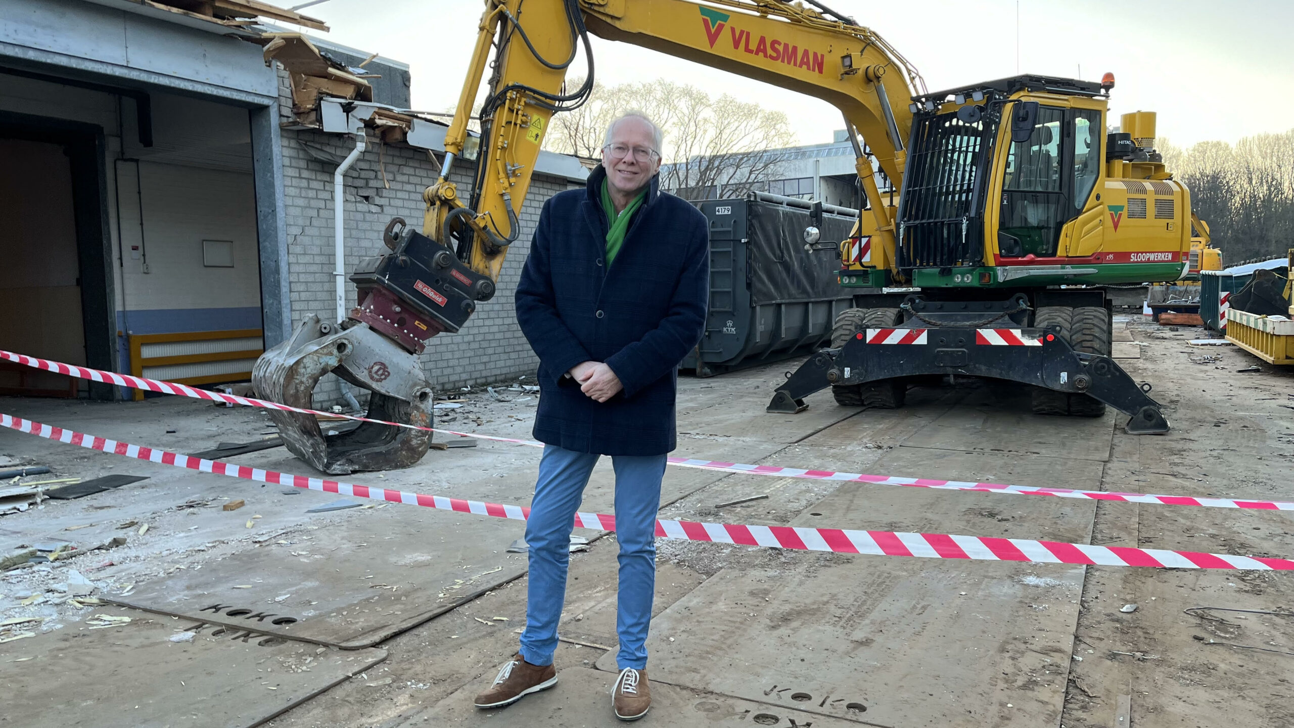 Wethouder Philip Broeksma mocht de starthandeling verrichten, door met een kraan een hap uit het oude pand te nemen. Een keer wat anders dan gewoon een lintje doorknippen. “Ergens zit er nog wel een klein jongetje in mij, ” lacht de wethouder. “Het is mooi om dit te mogen doen, want voor het verduurzamen van Groningen is dit een hele belangrijke stap.”