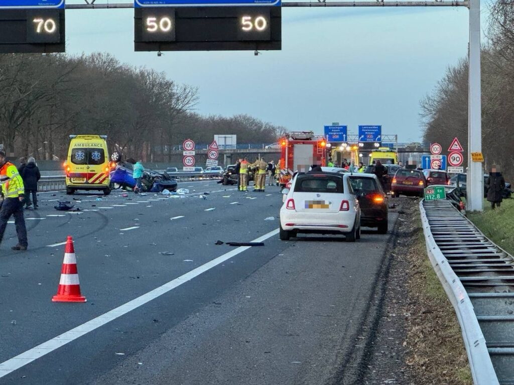 Bij het ongeluk zijn meerdere voertuigen betrokken, waarbij zeker één auto over de kop is geslagen. Hulpdiensten zijn massaal uitgerukt. “De snelweg is richting het Noorden volledig dicht”, laat Rijkswaterstaat weten. “Dit blijft de komende uren voorlopig ook nog zo omdat de politie een onderzoek is gestart naar de toedracht.”