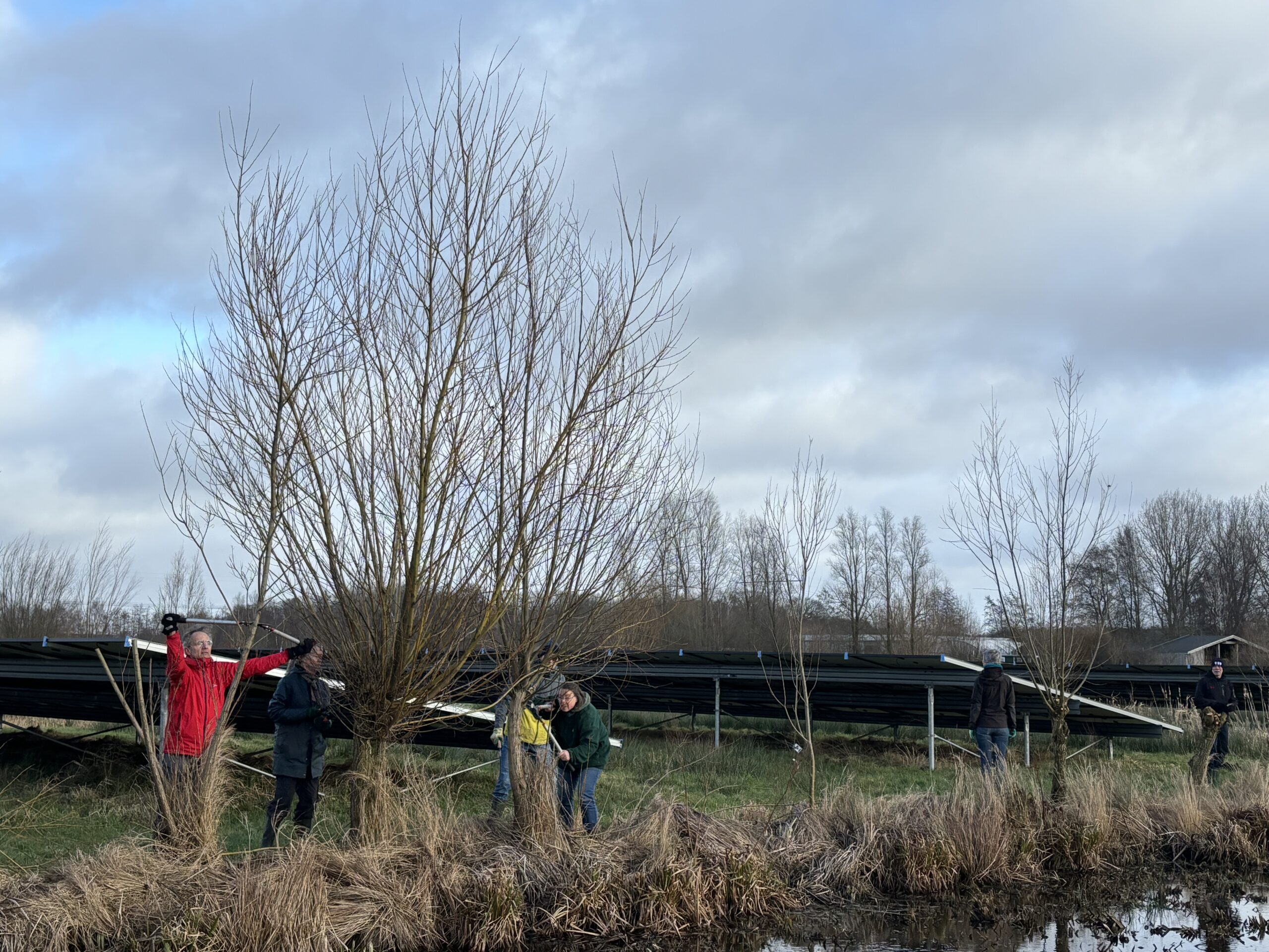 De wilgen zijn aangeplant om de biodiversiteit te bevorderen. Tegelijkertijd mogen de takken niet te lang worden, want dan werpen ze te veel schaduw op de zonnepanelen.