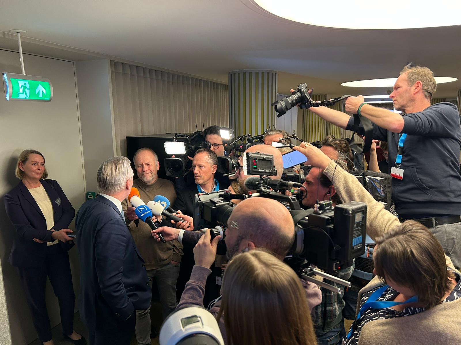 Staatssecretaris Eric van der Burg (VVD) staat de media te woord bij de Eerste Kamer. Foto: ingezonden