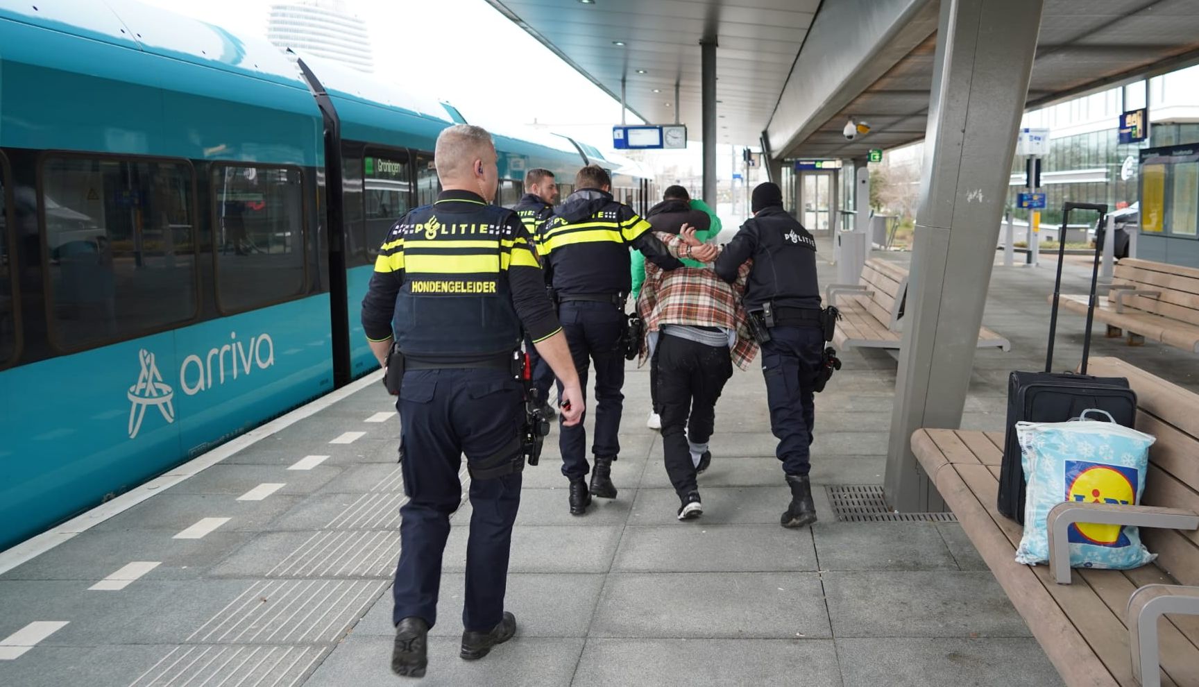 De aanhouding zorgde voor zeker een kwartier vertraging voor de andere reizigers in de trein.