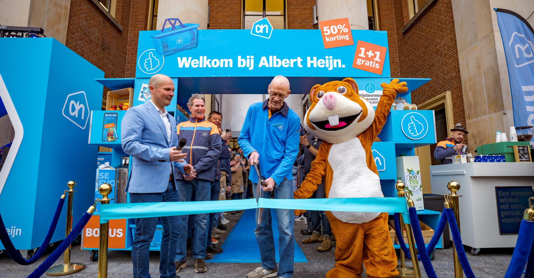 De vestiging van supermarkt Albert Heijn in de Korenbeurs is sinds dinsdagochtend weer open na drie weken verbouwen. Medewerker Max, die al lang in de Korenbeurs werkt, mocht de vernieuwde winkel openen.