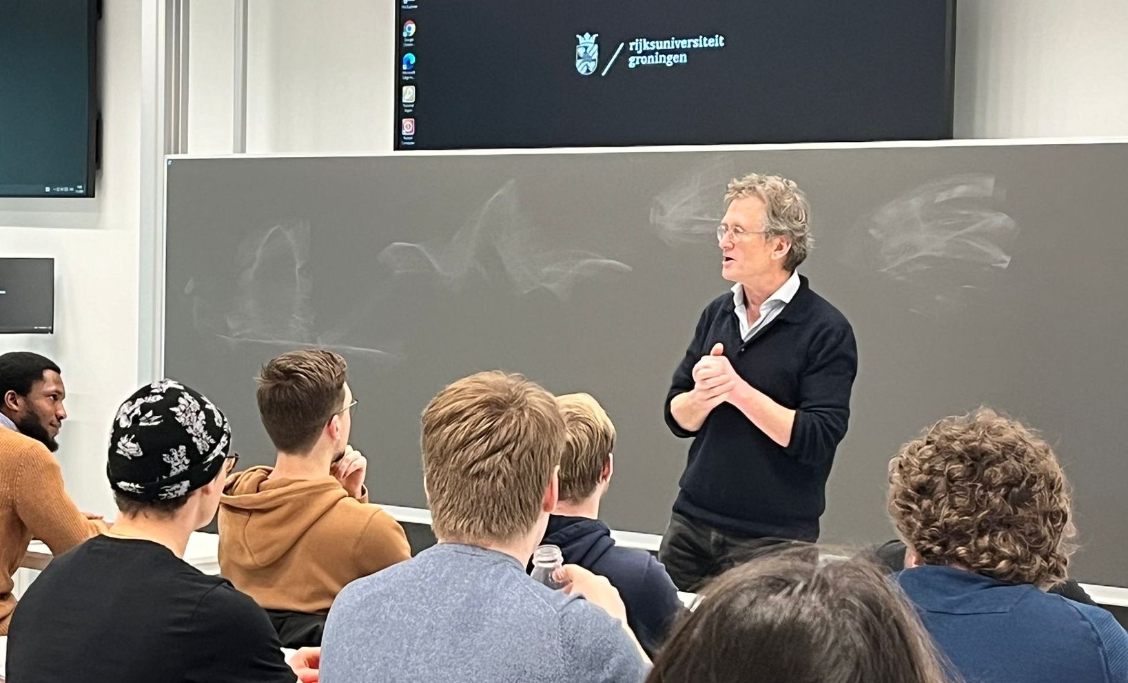 “Het is belangrijk om onze helden te eren”, vertelt Joost Frenken over het eerste college van Feringa in ‘zijn’ gebouw. De natuurkundige en decaan van de faculteit Science & Engineering van de RUG vertelt: “We zijn op de Zernike Campus, genoemd naar Nobelprijswinnaar Frits Zernike. Mooi dat we daar nu ook Ben Feringa kunnen eren.”
