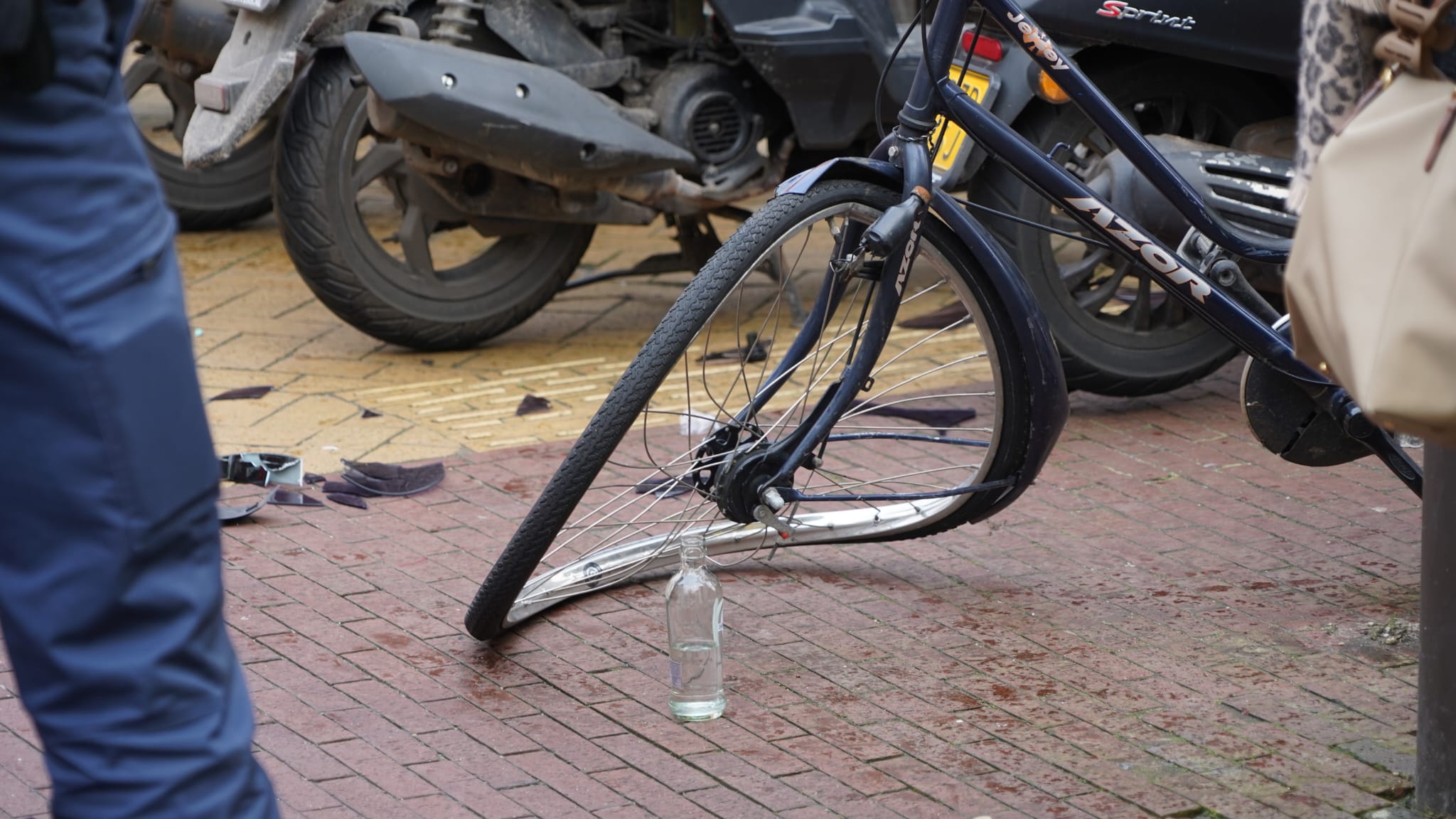 Op de beruchte kruising tussen de Astraat, de Aweg en de Westersingel heeft woensdagmiddag een forse aanrijding plaatsgevonden tussen een fietser en een scooter.