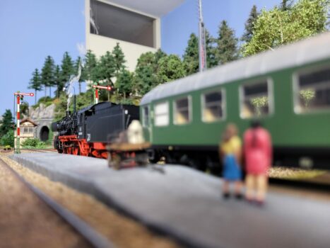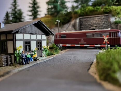 “Dankjewel! Ik ben er zelf ook heel blij mee. Twee jaar geleden ben ik met de bouw begonnen. En zo’n proces begint met allerlei knopen die je door moet hakken. Hoe moet de route er uit komen te zien? En nog belangrijker, in welk landschap moet de trein gaan rijden. Ik heb gekozen voor een Zwarte Woud-thema. Het is dus een fictieve miniatuurbaan, waarbij je je echt in Duitsland waant. Van Duitse dennen tot de Duitse vakwerkhuizen. En uiteraard het spoormaterieel dat daarbij hoort.”