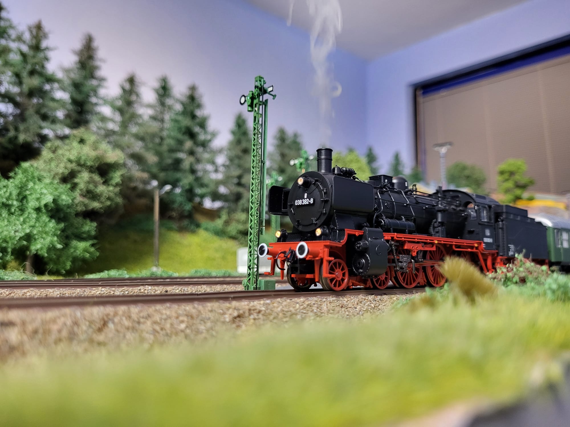 “Dankjewel! Ik ben er zelf ook heel blij mee. Twee jaar geleden ben ik met de bouw begonnen. En zo’n proces begint met allerlei knopen die je door moet hakken. Hoe moet de route er uit komen te zien? En nog belangrijker, in welk landschap moet de trein gaan rijden. Ik heb gekozen voor een Zwarte Woud-thema. Het is dus een fictieve miniatuurbaan, waarbij je je echt in Duitsland waant. Van Duitse dennen tot de Duitse vakwerkhuizen. En uiteraard het spoormaterieel dat daarbij hoort.”