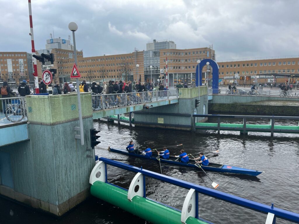 “Ik denk dat elke brug op de route zich er wel voor leent om de verrichtingen te bekijken. Maar van oudsher weet ik dat de Museumbrug vaak wel the place to be is. Daar is het meestal erg gezellig. En ook bij roeivereniging De Hunze, waar de finish is, is het goed vertoeven. Daar staat bijvoorbeeld ook een kopje koffie klaar.”