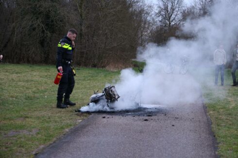 De melding van de brand kwam rond 16.45 uur binnen, waarop een tankautospuit naar de locatie werd gestuurd. “Het gaat om een scooter met een benzinetank”, vertelt Ten Cate. “Het voertuig staat in lichterlaaie op een achterafpaadje. De brandweer kan hier moeilijk komen. Met een brandblusser zijn brandweerlieden hier lopend naar toe gekomen om het vuur onder controle te krijgen.”