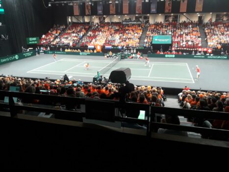 De Davis Cup Finals in Martiniplaza zitten erop. In een uitverkochte zaal zag het publiek dat de Nederlandse tennissers Zwitserland versloegen, waardoor een plekje in de volgende ronde is veiliggesteld. Maar hoe belangrijk zijn deze wedstrijden voor de Groningse studentensportverenigingen? Een gesprek met Tijmen Kremer van Veracket en Julian Luchjenbroers van GSTC.
