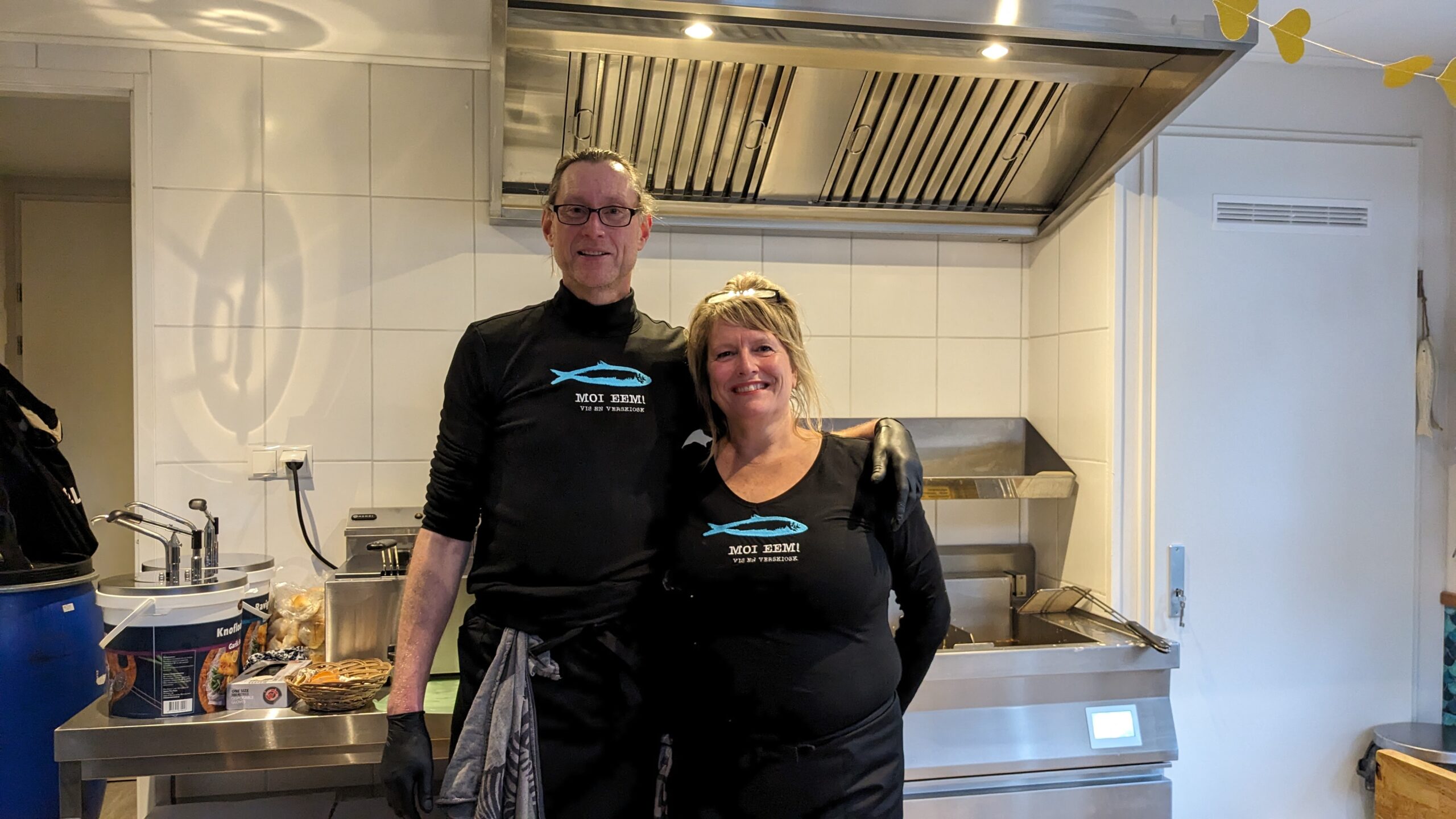 Na maanden van apparatuur kopen en vergunningen regelen openden Wim Meeuwesen en Judith Elzer vanochtend de deuren van hun viszaak ‘Moi Eem!’ aan het Wielewaalplein.