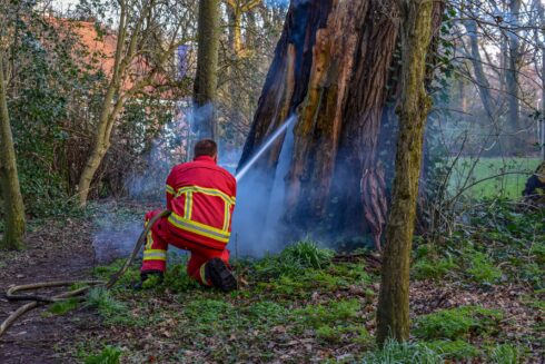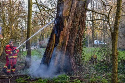 De melding van de brand kwam rond 17.15 uur bij de hulpdiensten binnen waarop een tankautospuit naar de locatie werd gestuurd. “Op de locatie bleek er brand te zijn in een boom in een park”, vertelt Weening. “Hier kwam flink wat rook bij vrij. Brandweerlieden hebben het vuur met één straal hogedruk onder controle gebracht.”