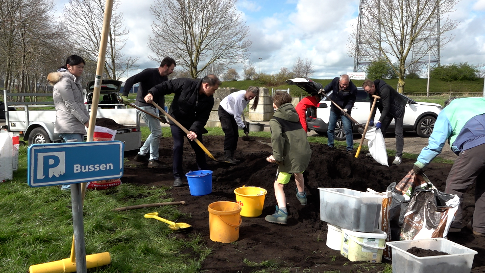 Een man die samen met zijn zoon de auto vult met compost vertelt: “Het lijkt heel veel en het is veel gewicht, maar als je het uitstrooit en je pakt er een harkje bij, dan denk je: had ik maar meer meegenomen.”