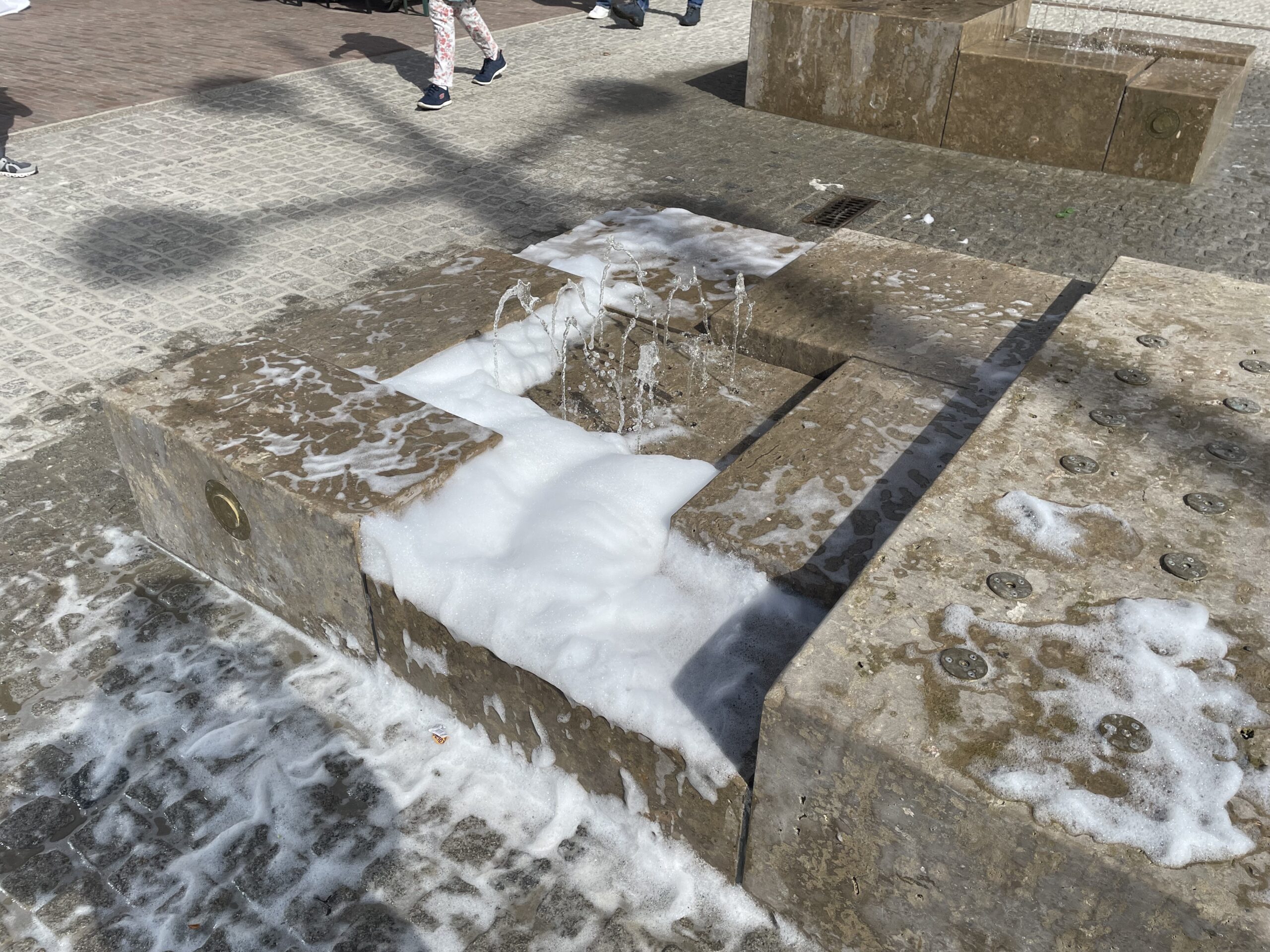 Waar veel mensen al bang voor waren is toch gebeurd. Er is zeep of een andere schuimende substantie in de nieuwe fonteinen op de Grote Markt gegoten.