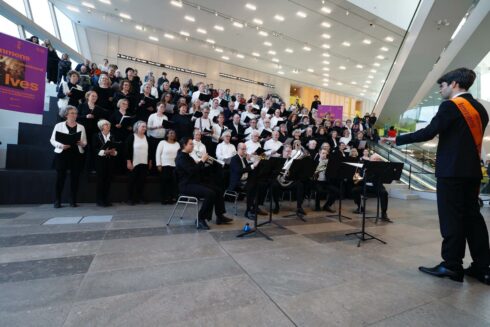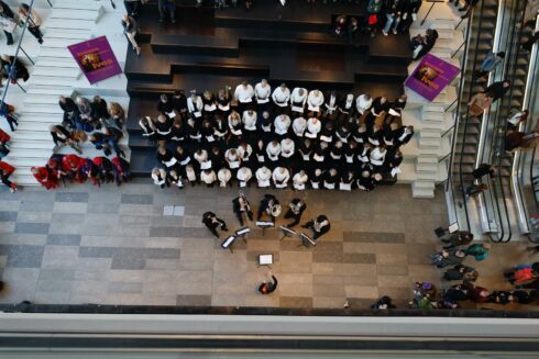 Het projectkoor treedt op in Forum Groningen. Foto: Rieks Oijnhausen