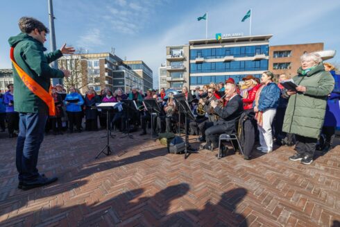 Behalve de marching bands was ook het projectkoor zaterdag in de binnenstad te vinden. “Zij hebben gezongen in Forum Groningen en op de Grote Markt. Ik vertelde al dat de marching bands op een gegeven moment allemaal op de Grote Markt kwamen. Het projectkoor was daar toen ook. Het was heel bijzonder om het geluid van de bands te horen, waarbij het op een gegeven moment werd overgenomen door het koor.” Het projectkoor bestaat uit leden die uit de drie noordelijke provincies komen. “Zij hebben een stuk gezongen dat gecomponeerd is door Gijs Philip van Schaik. Het stuk duurt tien minuten, maar het publiek liet na afloop weten dat het wel wat langer had mogen duren. Het werd heel positief ontvangen.”