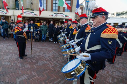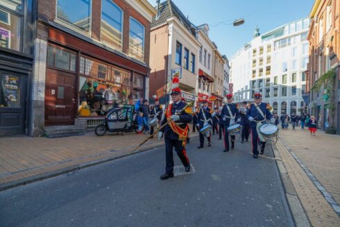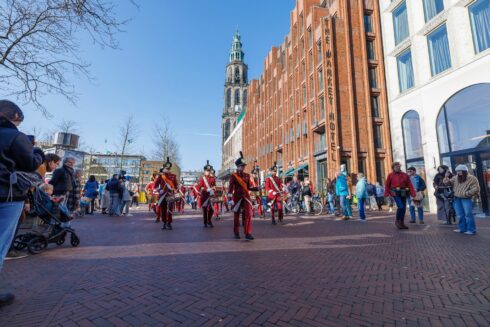 “Het was een ontzettend groot succes”, vertelt projectleider Lily Lanser. “Van tevoren weet je niet wat het effect zal zijn, maar het resultaat was heel mooi. Het was behoorlijk druk in de binnenstad en veel mensen bleven staan kijken. Heel veel kinderen keken ook gefascineerd toe naar al die muzikanten in mooie uniformen.” Gruno’s Post Harmonie, Drumfanfare Avanti Groningen, Traditional Collective uit Leeuwarden en Showband Noordenveld liepen een route door de binnenstad. “Op een gegeven moment kwam iedereen samen op de Grote Markt, en speelden de bands door elkaar heen waardoor er een vrolijke chaos ontstond. Een heuse kakafonie. Ik denk dat Charles Ives van bovenaf tevreden heeft meegekeken.”
