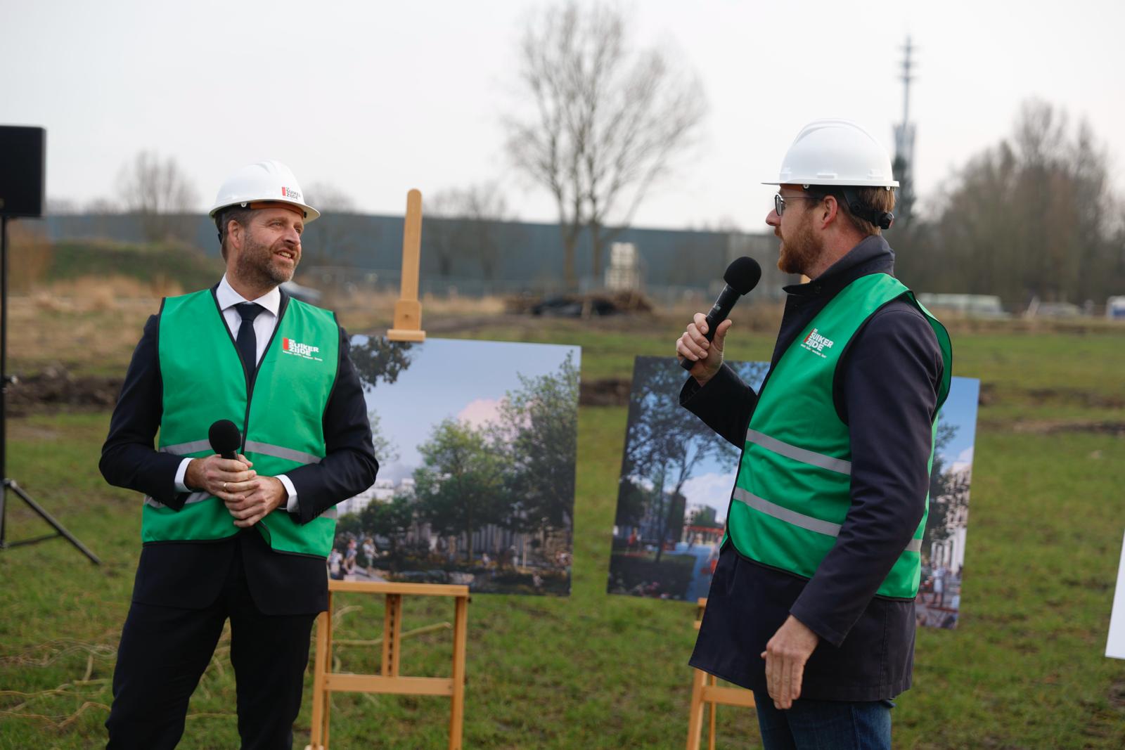 “Na een jarenlange voorbereiding is het zover: de bouw van het nieuwe stadsdeel De Suikerzijde gaat van start”, vertelde Van Niejenhuis. “Je kun hier straks niet alleen wonen, maar ook werken, leren, recreëren, van groen en cultuur genieten. Het wordt een enorme aanwinst voor de stad en ik ben trots dat ik hier vandaag met minister de Jonge het startsein voor mag geven.” De Jonge vult aan blij te zijn met het grote aandeel sociale woningen en middenhuur in het eerste bouwdeel: “De vraag naar betaalbare woningen is ook in Groningen groot. Een grootschalige woningbouwlocatie als De Suikerzijde, waar in totaal 5000 woningen komen, levert hier een belangrijke bijdrage aan. Als Rijk steunen we graag met kennis, kunde en financiële middelen.”