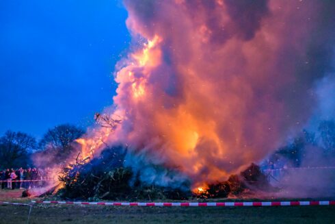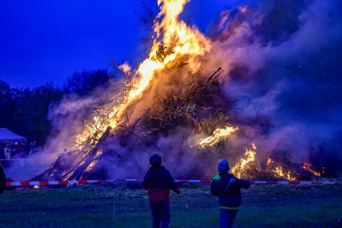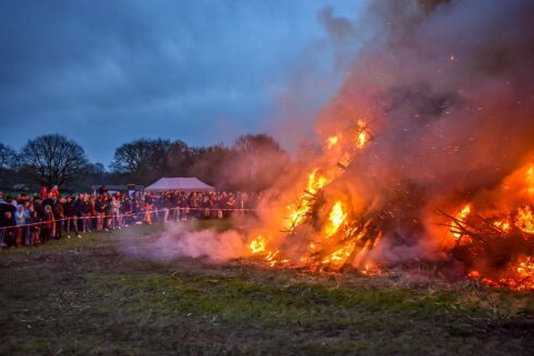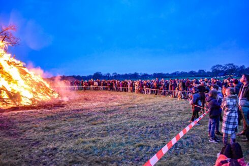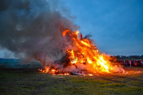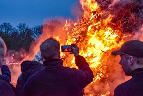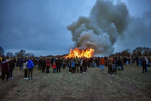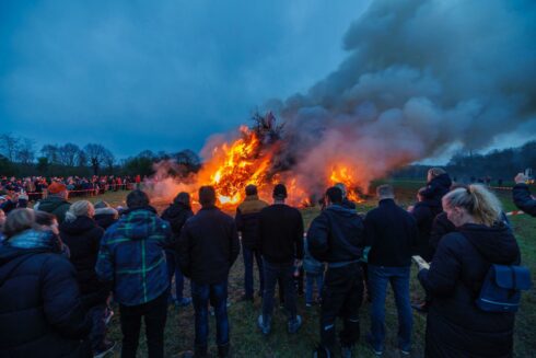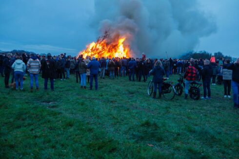 “Rond 20.00 uur werd de bult hout aangestoken”, vertelt nieuwsfotograaf Mike Weening. “Een half uur eerder was het terrein aan het Zuidveld opengesteld voor het publiek. Veel mensen kwamen er op af. Uit het dorp, maar ook uit de omgeving. Het was flink druk. Mijn inschatting is dat het paasvuur bezocht is door zo’n 100 tot 150 mensen.” Daarmee was het drukker dan in voorgaande jaren.