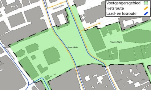 Dit negatieve politieadvies heeft tot gevolg dat de politie vooralsnog ‘geen actieve handhaving zal verrichten ten opzichte van de fietsers in dit verkeersbesluit’. Maar het gemeentebestuur gooit dit advies dus in de wind en gaat door met de plaatsing van de verkeersborden. “Om de bereikbaarheid van de binnenstad voor de (brom)fietsers en de stadslogistiek te waarborgen wordt het voor deze verkeersdeelnemers toegestaan om twee routes over de Grote Markt te (blijven) gebruiken”, schrijft het college in haar besluit. Maar ‘(brom)fietsers en gemotoriseerd verkeer hebben niet de vrijheid om zich zoals de voetganger over de gehele Grote Markt te bewegen. De voetganger is dominant. De juridische status van voetgangerszone zal dan ook aan de Grote Markt worden toegevoegd