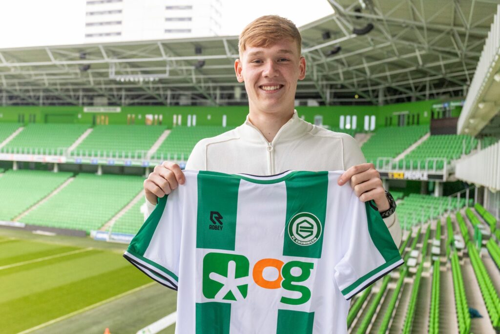 De achttienjarige Nils Eggens heeft woensdag zijn eerste contract getekend bij FC Groningen. De spits, afkomstig uit de eigen jeugd, zette zijn handtekening onder een overeenkomst tot de zomer van 2026.