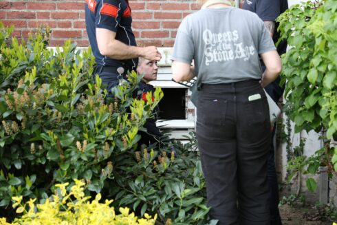 De melding van een dier in problemen kwam rond 19.00 uur binnen bij de hulpdiensten, waarop een tankautospuit naar de locatie werd gestuurd. “Op de begane grond van een portiekflat bevindt zich een ventilatierooster”, vertelt Ten Cate. “Achter dit rooster zit een kat. Het dier kan er niet vandaan komen en ook de eigenaar lukt het niet om het dier te bevrijden. Daarom is de hulp ingeroepen van de brandweer.”