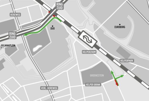 Verkeer uit de Helperzoomtunnel verplicht rechtsaf op de Helperzoom
