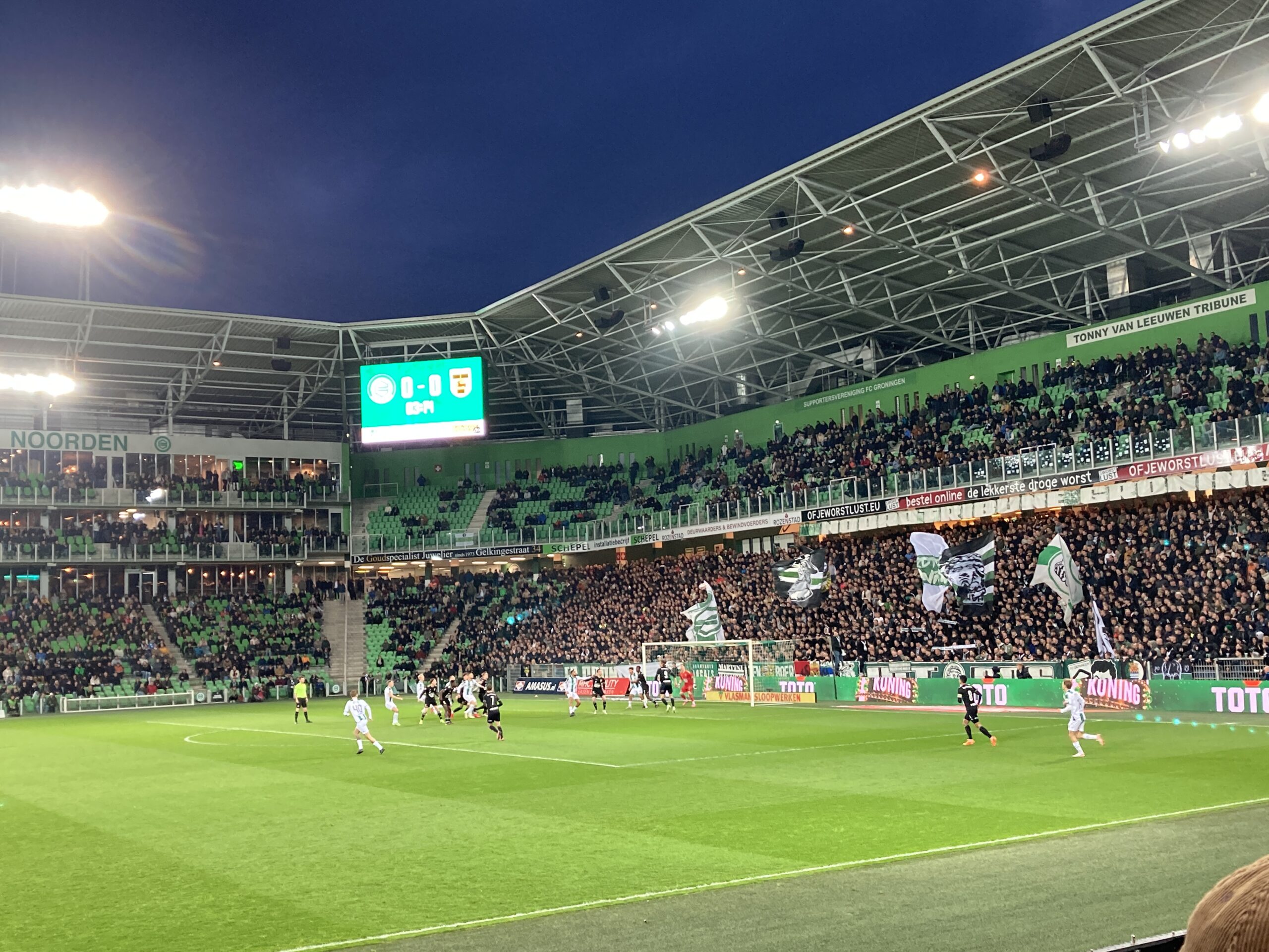 FC Groningen komt daarmee op 70 punten. Dat is 1 punt minder dan Roda JC dat op plaats twee staat. Op de eerste plaats in de competitie staat Willem II dat 74 punten heeft en eerder op de dag nog gelijkspeelde tegen MVV. Komende vrijdag speelt de FC de uitwedstrijd tegen Willem II. Met deze uitgangspositie heeft de FC promotie volledig in eigen hand.