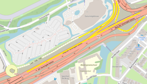In de nacht van vrijdag op zaterdag en zaterdag overdag wordt er gefreesd en gezaagd in het asfalt. Op zondag krijgt de verbindingsboog van Ring West naar het Julianaplein nieuw asfalt en nieuwe belijning. (zie afbeelding hieronder)