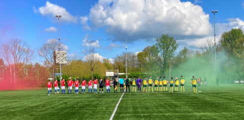 In de 78′ minuut leek het dan toch mis te gaan. De vrijgespeelde Moos Bakker deed alles goed, kapte een tegenstander uit en schoof de bal in de verre hoek voor de 2-2. Maar wederom redde de binnenkant paal Groen Geel.