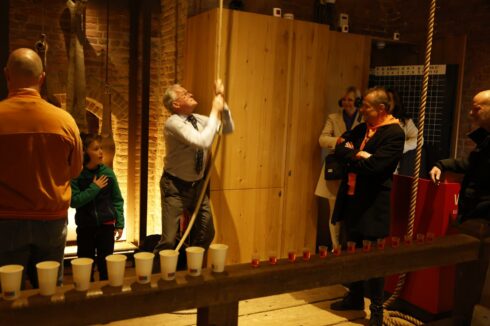 Burgemeester Koen Schuiling (VVD) hielp zaterdagochtend bij het luiden van de klokken. Foto: Rieks Oijnhausen