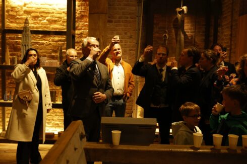 Na afloop van het luiden van de klokken werd er een Oranjebitter gedronken. Foto: Rieks Oijnhausen