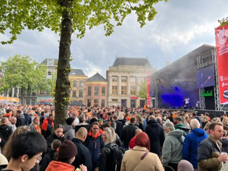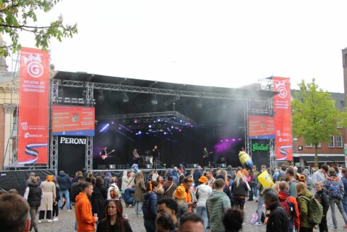Op het Kingsland Festival in het Stadspark is het rond het avonduur druk. Op verschillende podia treden diverse artiesten op waaronder Kriss Kross Amsterdam, Antoon, Davina Michelle, Kraantje Pappie, Frenna en Bizzey. “Bij de ingang is er een gebied ingericht waar je de fiets kunt parkeren”, vertelt een fotograaf. “Die is helemaal vol. Het lijkt me ook een hele kunst om je fiets weer terug te vinden.” De fotograaf spreekt van een gezellige sfeer rond het terrein. Op de Vismarkt treden ook artiesten op. In het begin van de middag was het daar nog rustig, maar inmiddels is het daar ook druk.