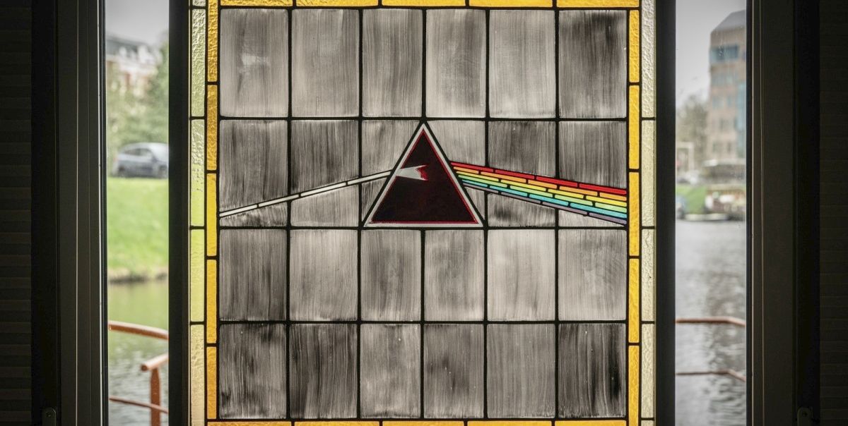 Het Groninger Museum heeft een uniek glas-in-loodraam aangekocht. Het stukje glaskunst, gemaakt door ontwerpstudio Hipgnosis, heeft het motief van Pink Floyd’s album Dark Side of the Moon.