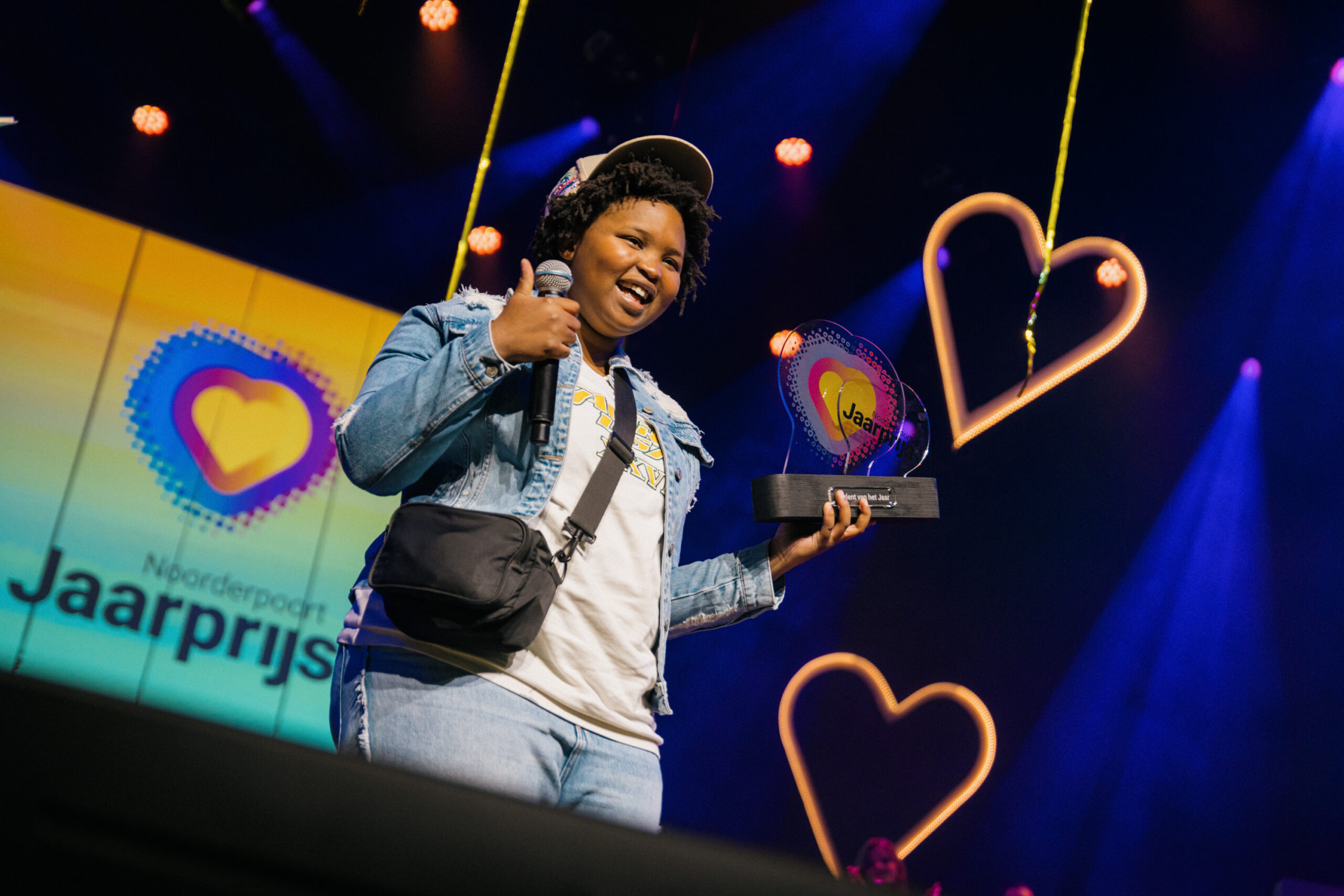 De prijs werd donderdagavond uitgereikt in Martiniplaza. Vanwege de prijs is Katie een jaar lang de ambassadeur van Noorderpoort. “Wow, dit vind ik echt heel leuk”, reageert de 18-jarige winnares.