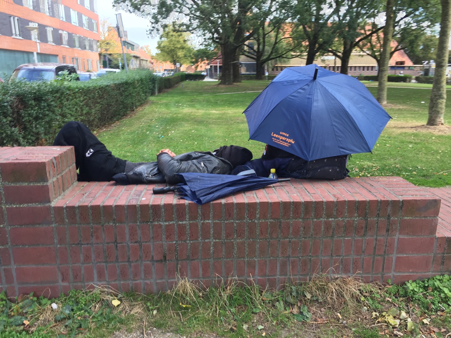 Maar na tien jaar stopt het. “We kunnen concluderen dat echt veel mensen dankzij de plu’s beschermd zijn tegen wind en regen. In 2018 zagen we bijvoorbeeld hoe onze leenparaplu’s vlakbij in het Oosterpark (dakloze) mensen op het Linnaeusplein drooghielden. De sociale functie van ’t groot zaikenhoes werkt tot ver in de stad door.”