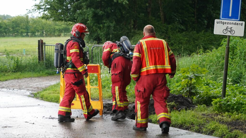 De brandweer zette de omgeving van het gaslek af, in afwachting van de komst van Enexis. De netbeheerder van het gasnetwerk gaat het gaslek permanent dichten.