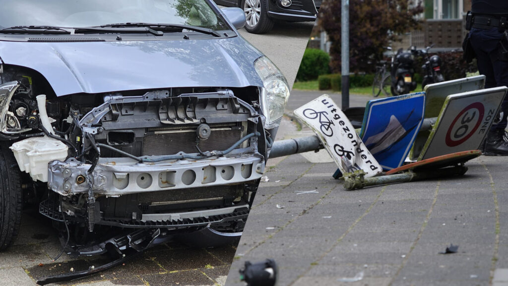 De automobilist botste frontaal op de lantaarnpaal, waar ook diverse verkeersborden op waren bevestigd. Na de paal te hebben geramd raakte de automobilist ook een stilstaand voertuig.