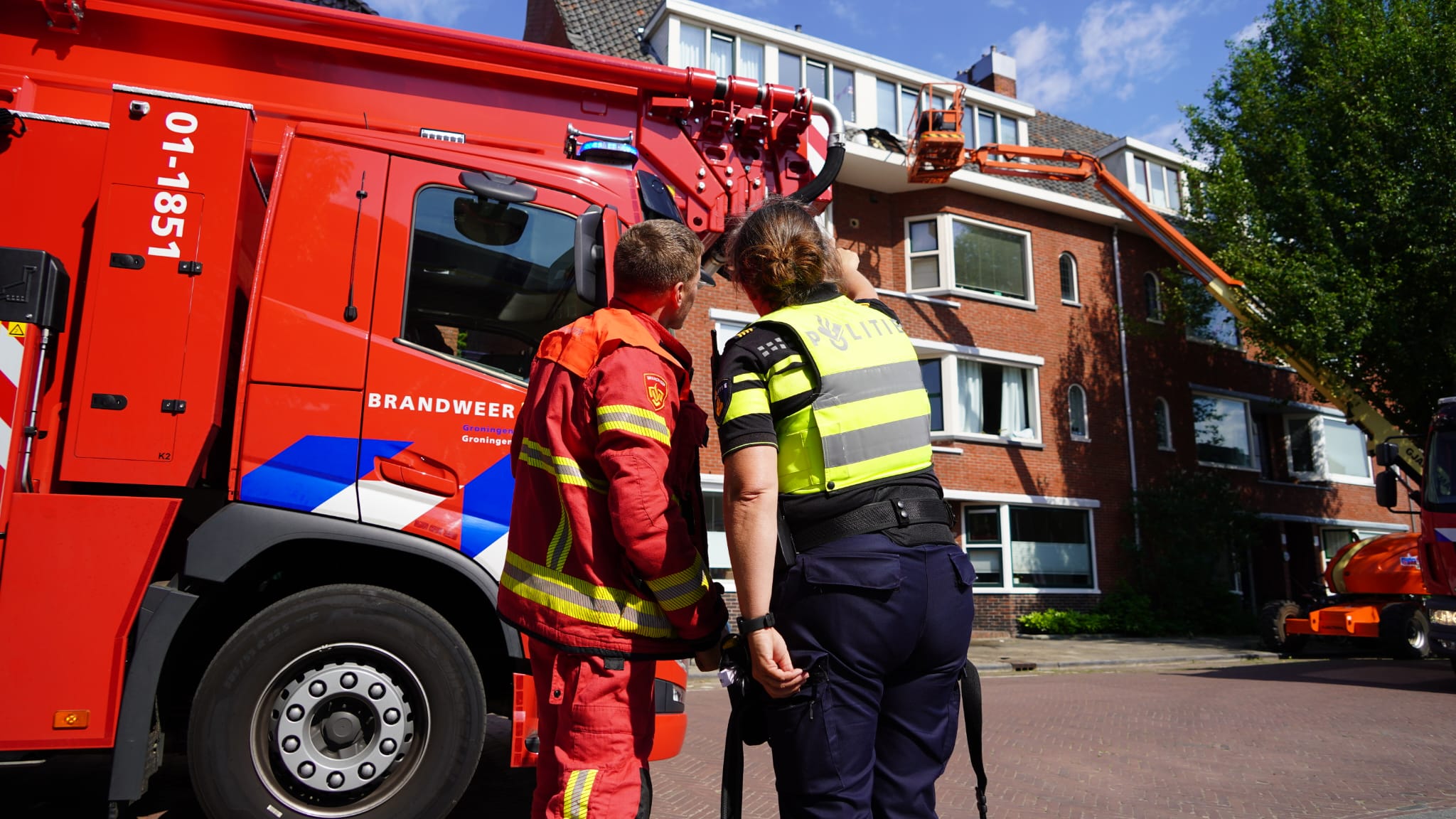 De brandweerlieden hebben een nacontrole gedaan. “Onder andere met behulp van een warmtebeeldcamera hebben we gekeken of er nog vuurspots aanwezig waren. Dit bleek niet het geval te zijn. Wel hebben we onze hoogwerker gepositioneerd, waarmee we een nablussing hebben gedaan. Uiteindelijk is een gedeelte van twee vierkante meter van het dak beschadigd geraakt. De persoon die een bluspoging heeft gedaan is niet gewond geraakt. Wel komt stichting Salvage ter plaatse. Door de brand is het dak beschadigd geraakt. Dit zal afgedekt moeten worden. Salvage gaat de bewoners hierbij ondersteunen.”