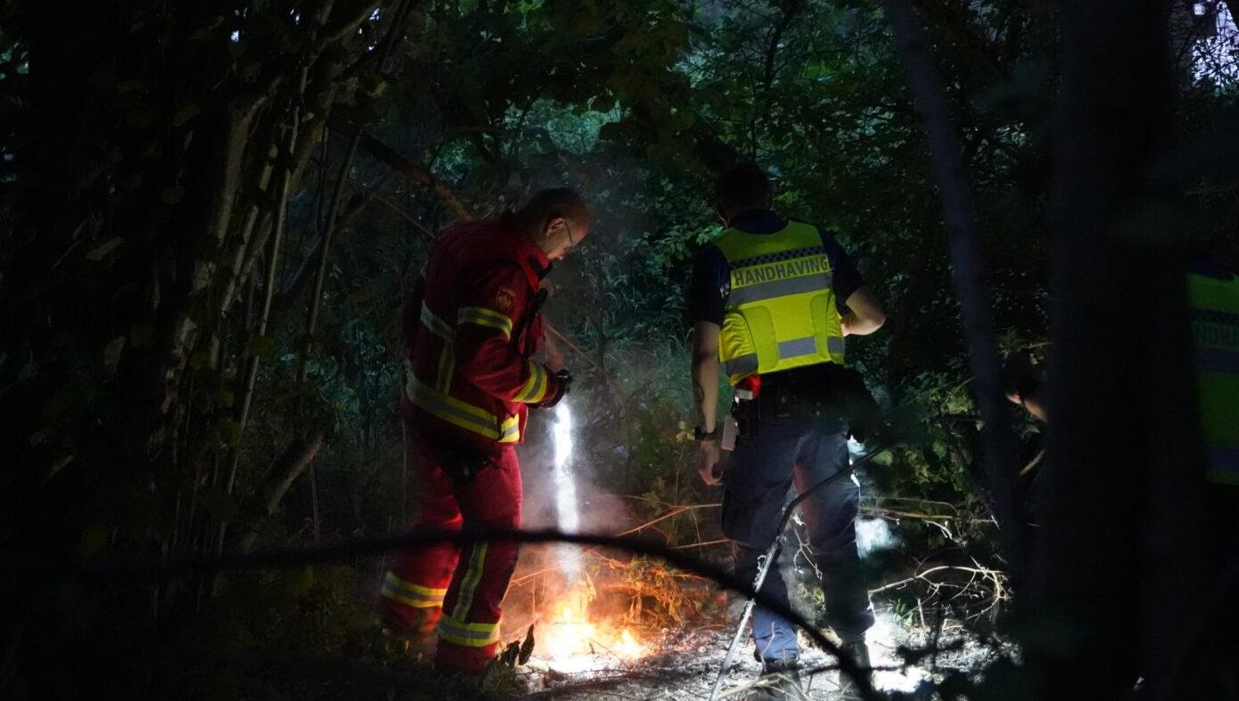 In de bosjes naast het Jaagpad stond een tent in brand, vermoedelijk van een dakloos persoon.