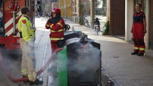 De eerste melding kwam rond 17.00 uur bij de hulpdiensten binnen. Nadat de brandweerlieden het vuur onder controle hadden gebracht was het ruim een uur later opnieuw raak. “Er komt flinke rookontwikkeling bij deze brand vrij”, vertelt Wind. “Brandweerlieden hebben dit keer de container vol laten lopen met water en schuim om daarmee de vlammen te smoren.”
