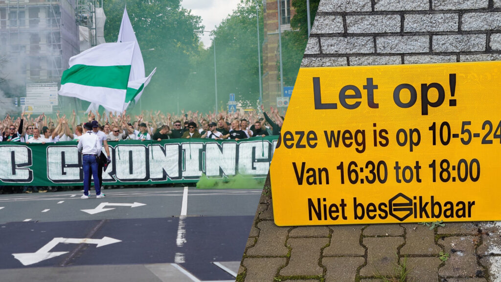 De optocht van de FC-supporters gaat vanaf het Sontplein, via de Europaweg, naar de Euroborg om daar de laatste wedstijd van het seizoen te bekijken. Verkeer kan tijdens de optocht de stad uit via de Bornholmstraat.