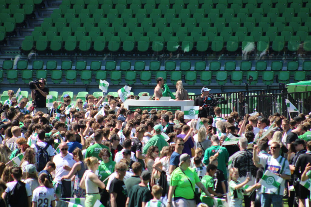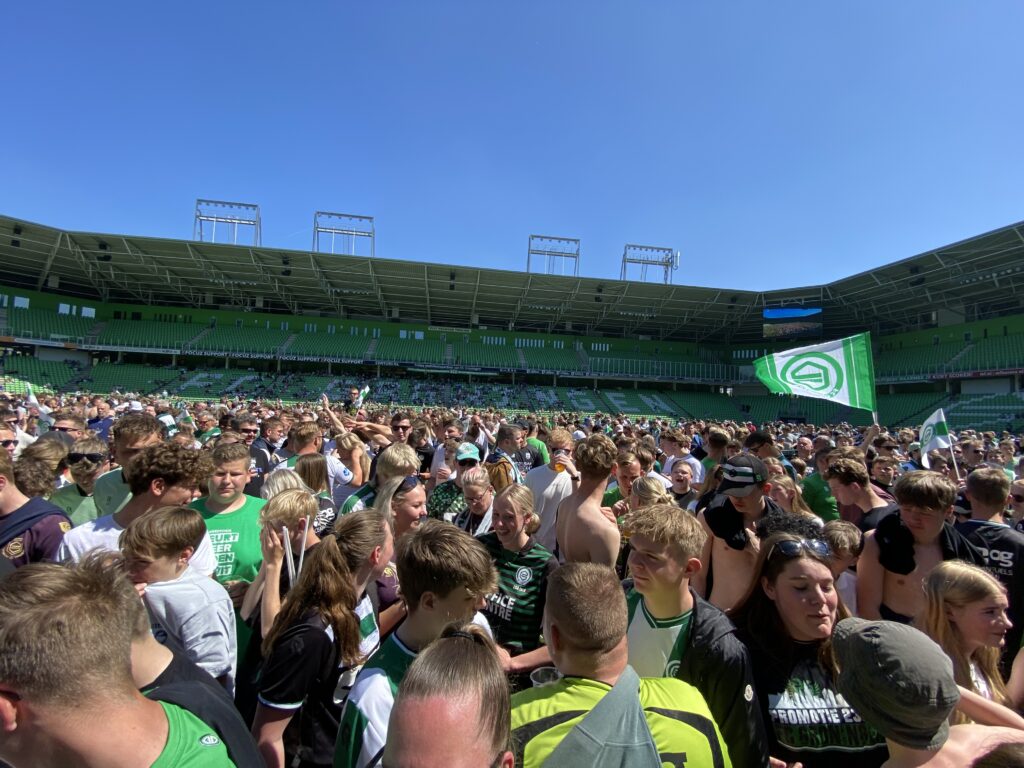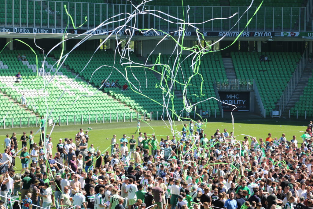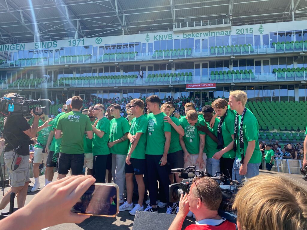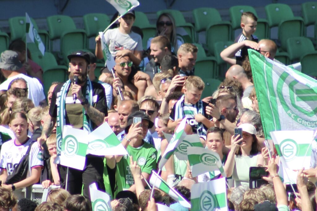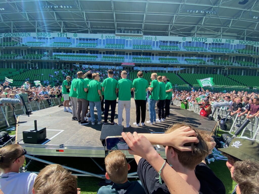In de Euroborg vond zondagmiddag het promotiefeest van FC Groningen plaats. De huldiging trok duizenden mensen naar het stadion.